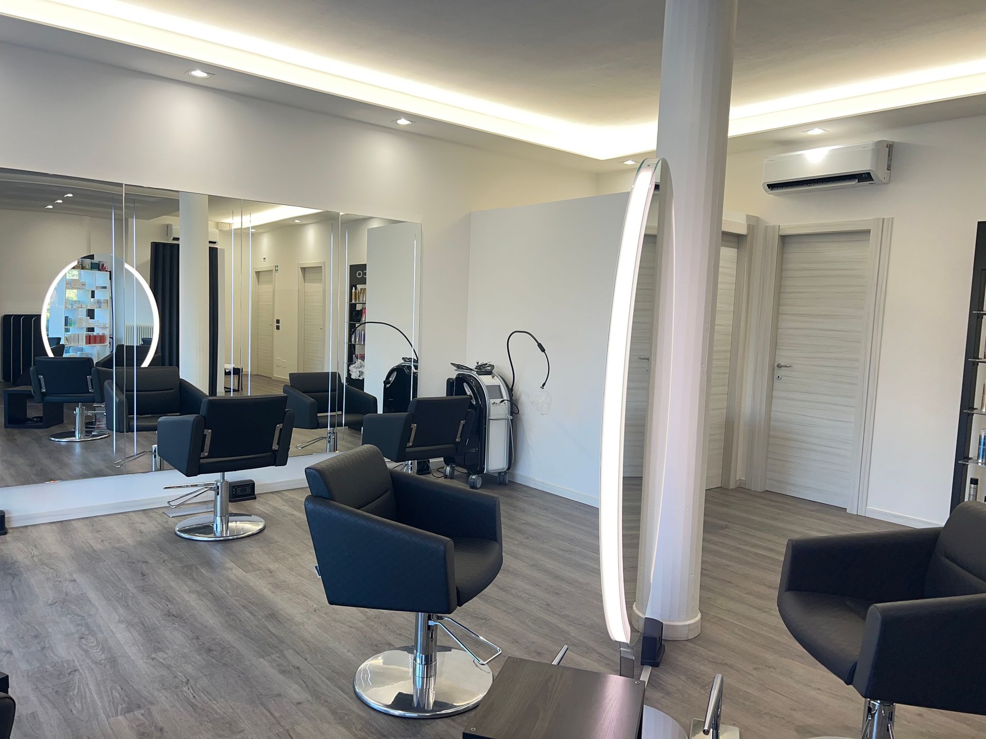 Vi troverete all'interno di un moderno centro dotato delle più nuove e moderne attrezzature per la cura dei vostri capelli e del vostro viso e corpo, il centro dispone di una sale d'attesa, una sala per il lavaggio dei capelli, diverse poltrone per il taglio e il colore, e per il settore estetico delle salette private per la cura del vostro corpo, o trattamenti estetici al viso e alle mani.